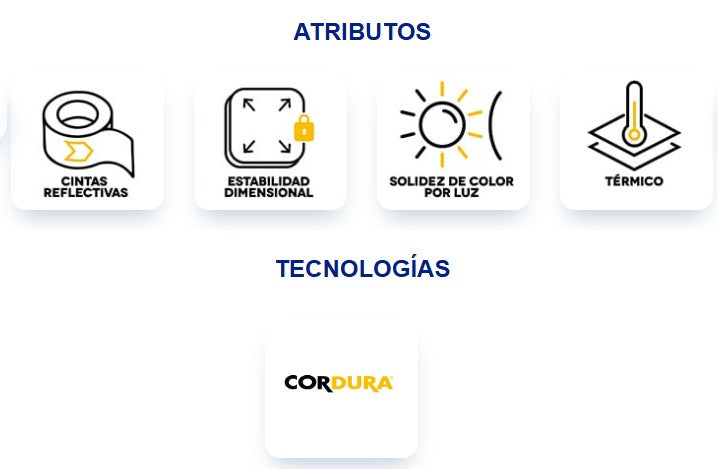 | Atributos | Antipilling, Cintas Reflectivas, Estabilidad Dimensional, Solidez de Color, Térmico |